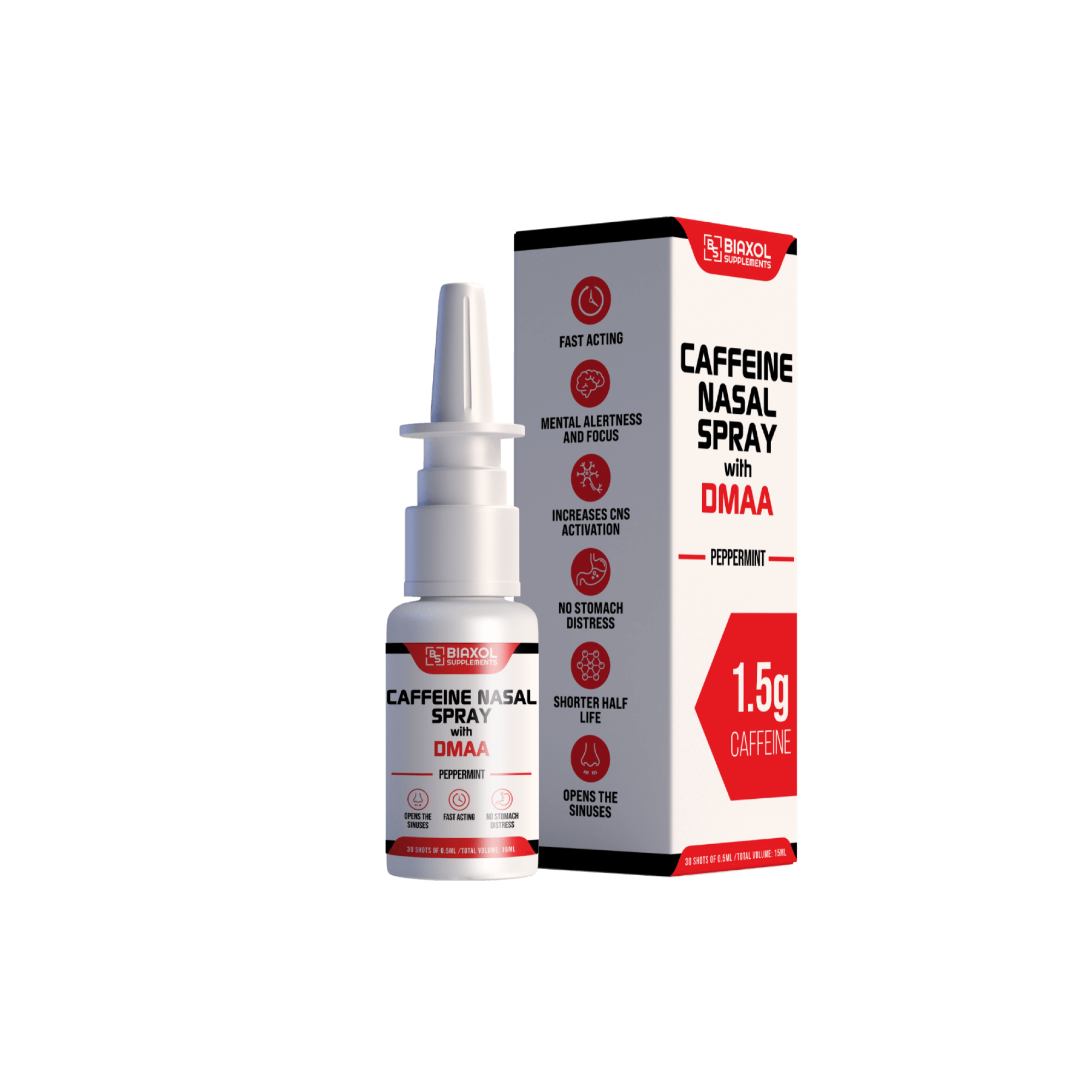 - Biaxol Koffein Nasenspray hat eine kürzere Halbwertszeit, sodass es kurz vor dem Schlafengehen trainiert werden kann.