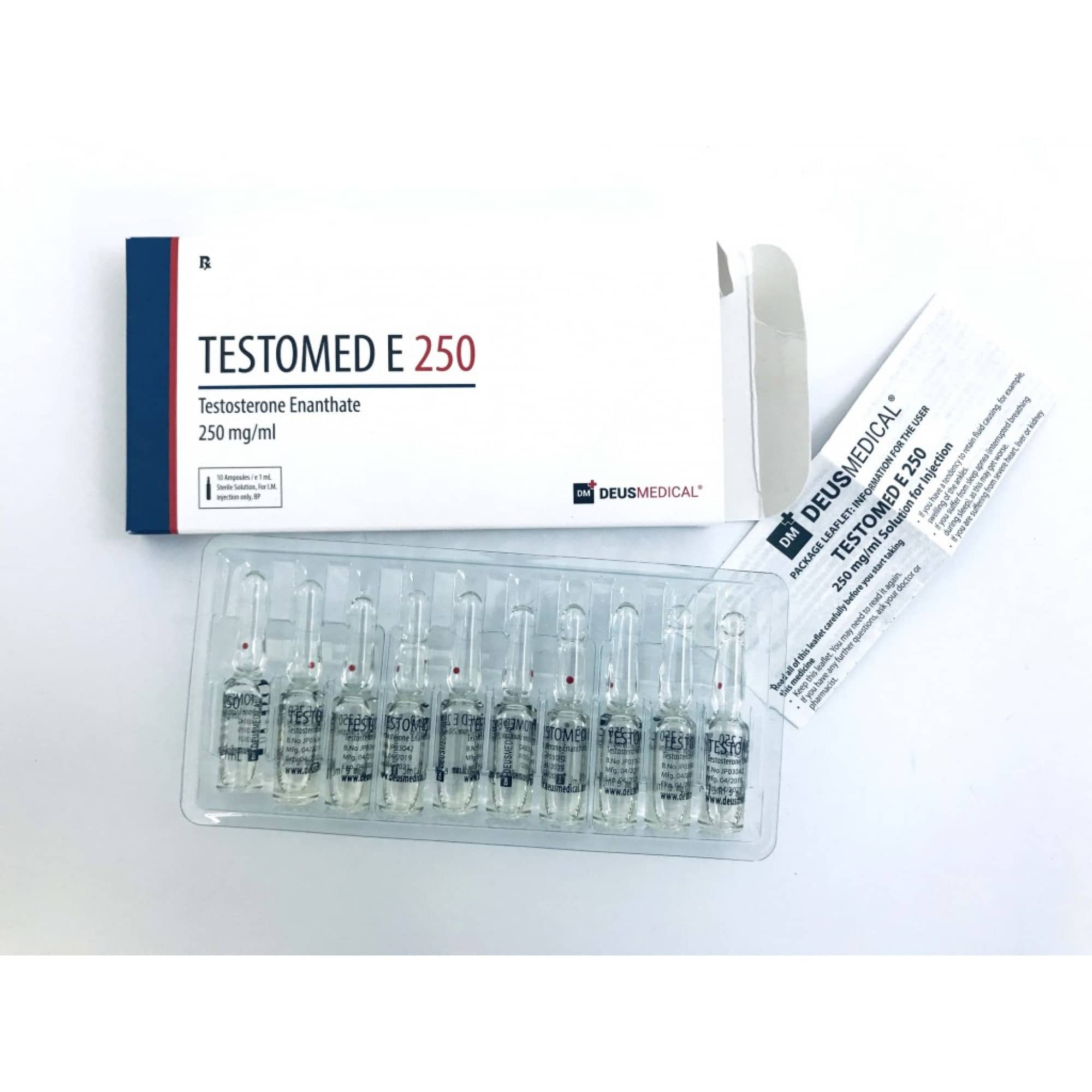 TESTOMED E 250 mg (Testosterone Enantate) ist eine der vielen veresterten Varianten von Testosteron zur Verfügung. Es ist eine injizierbare Verbindung mit einer langsamen Rate der Freisetzung aufgrund der größeren Enanthate Ester an das Testosteron-Molekül befestigt. Dies erhöht die Freisetzungsrate des Testosteronhormons und die Halbwertszeit einer langsameren Freisetzung.