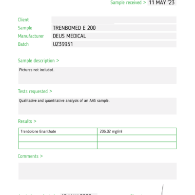 TRENBOMED E 200 (Trenbolone Enanthate) ist eins der stärksten injizierbaren anabolen Steroide, die je kommerziell hergestellt wurden. Diese Verbindung ist fünfmal stärker als Testosteron – sein androgenes/anaboles Bewertungsprofil von 500:500. TRENBOMED E 200 (Trenbolone Enanthate) wurde als langsam freisetzende Version von Trenbolone ausschließlich für den Zweck des Bodybuildings erfunden.