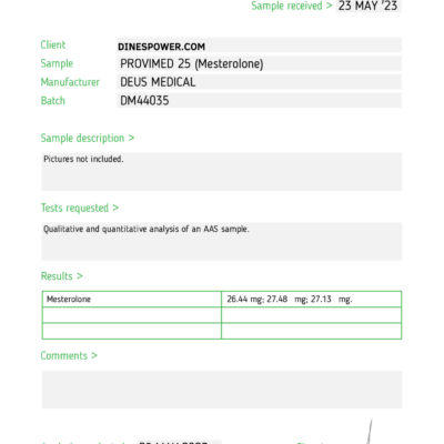 PROVIMED 25 ist der Markenname für das Androgen bekannt als Mesterolon. Diese Verbindung wird nicht als anaboles Steroid angesehen, da Mesterolon im Gegensatz zu anderen Steroiden eine sehr schwache oder sogar keine anabole Aktivität aufweist.