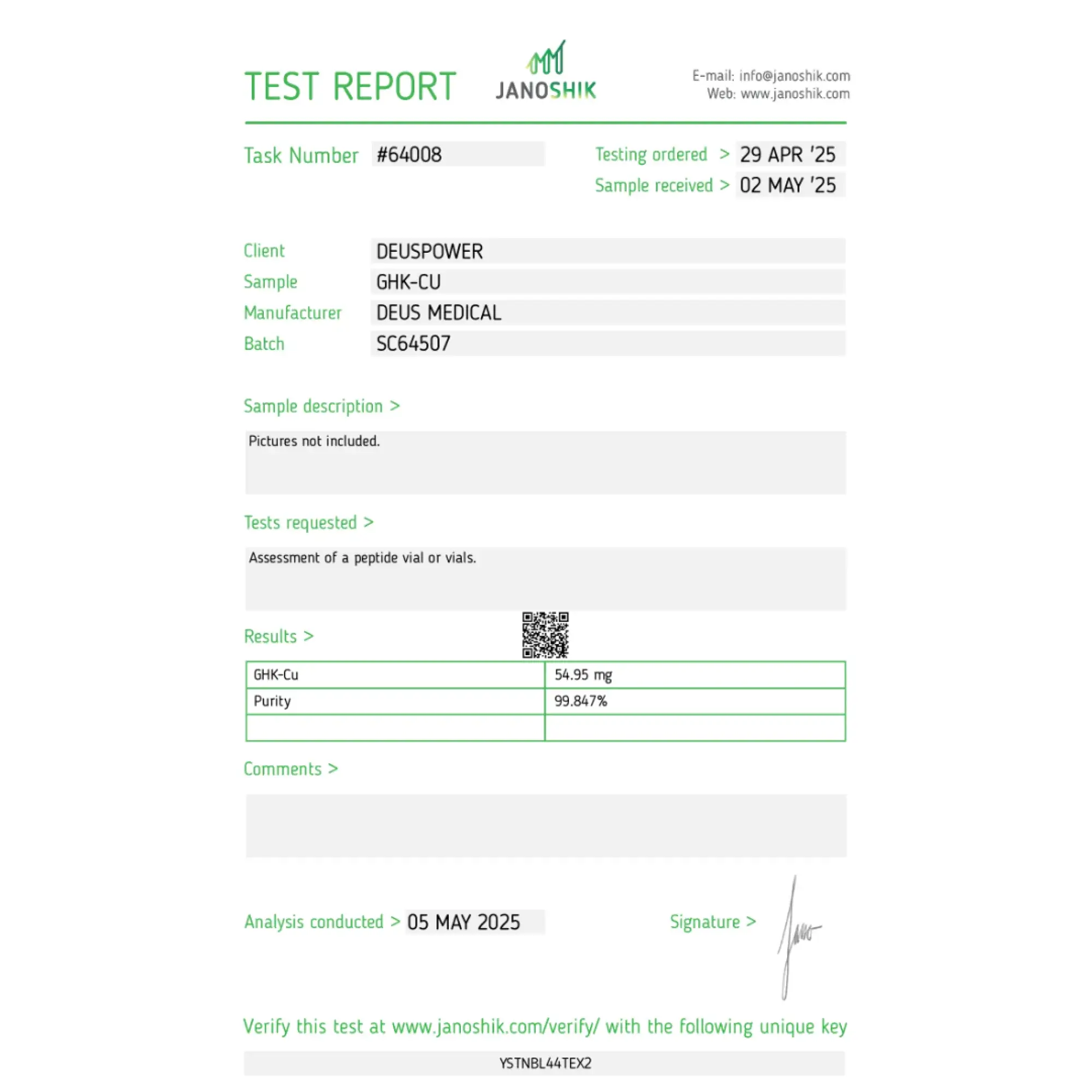 Entzündungshemmende Eigenschaften: GHK-Cu reduziert Entzündungen durch die Herunterregulierung entzündungsfördernder Zytokine. So werden Schäden durch chronische Entzündungen minimiert und die Gewebereparatur unterstützt.