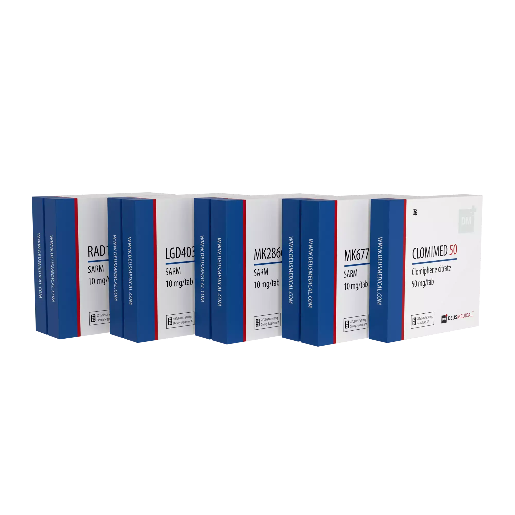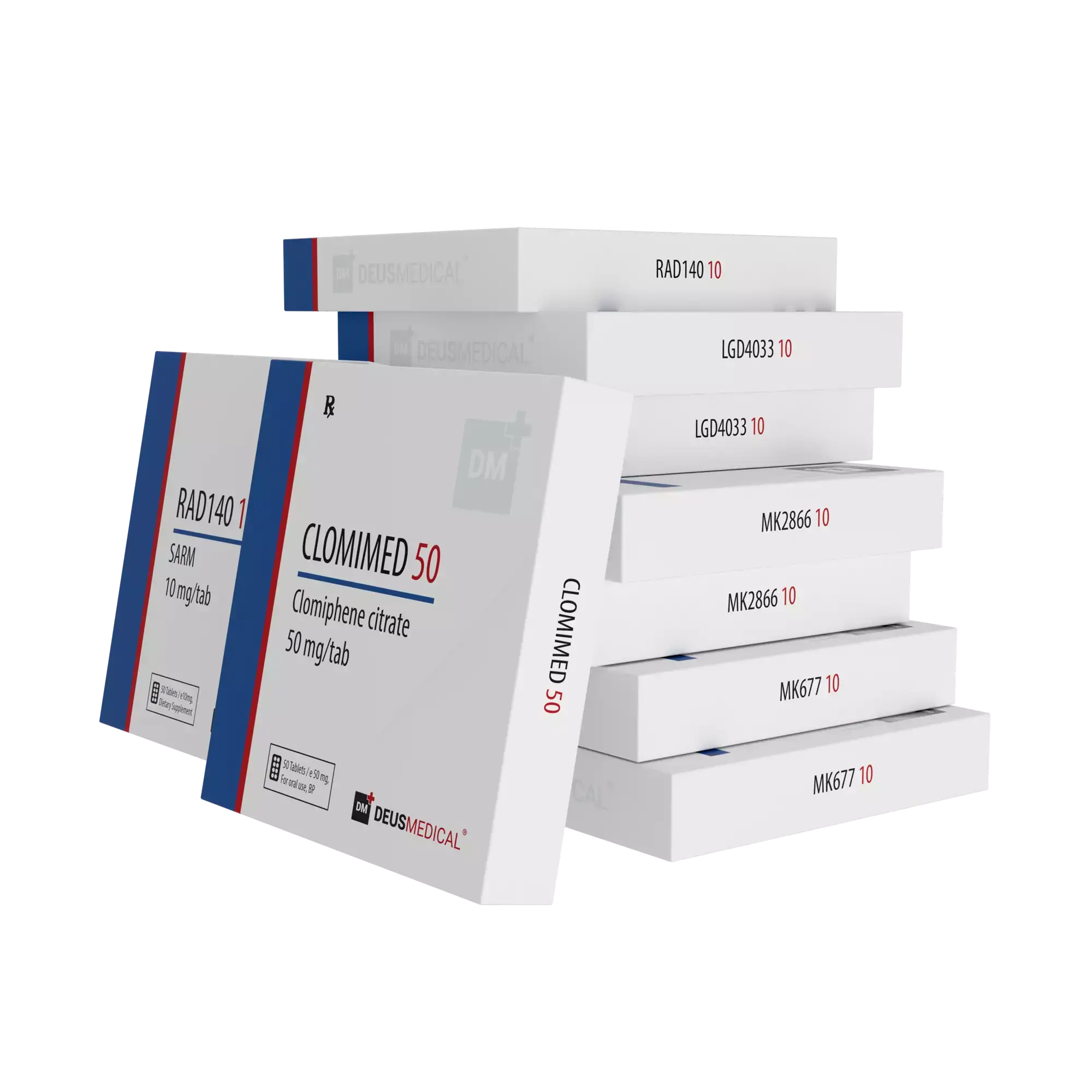 - CLOMIMED 50 (Clomifen Citrat) — Beginn 3 Tage nach Abschluss der SARMs: 50 mg pro Tag für die ersten 2 Wochen, dann 25 mg pro Tag für die verbleibenden 2 Wochen.